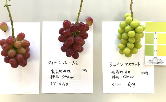 「シャインマスカット」と「クイーンルージュ®」の目揃え会でございます リニューアルした出荷箱も!!