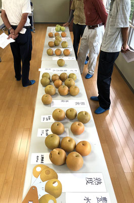 2025/08/27 豊水梨と二十世紀梨の査定会 ナシの2回目の査定会です 二十世紀はまだ早い気がしますが 豊水梨は良い色に仕上がっています 査定会に先立ち 役員が今年の果実の傾向や注意点など 選果基準の詳細を検討しました tagPlaceholderカテゴリ: